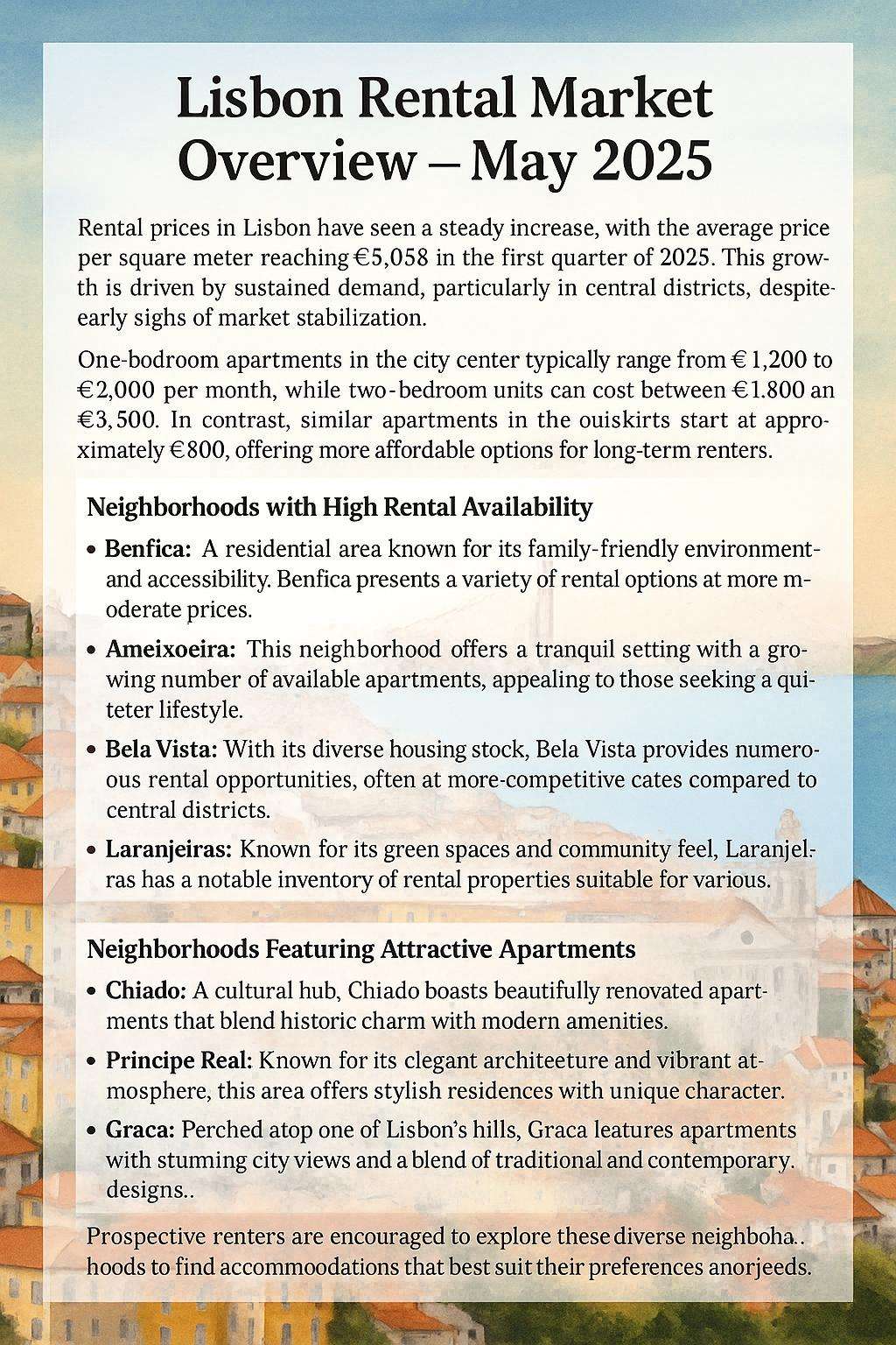 As of May 2025, apartments for rent in Lisbon's market remains dynamic.